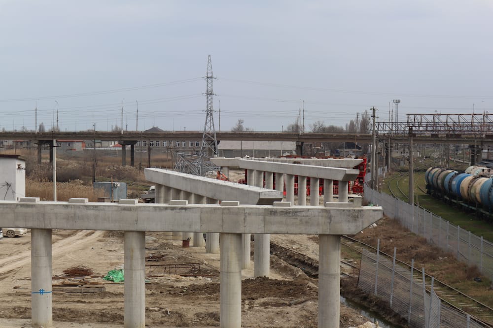 Параллельно ведутся работы по устройству подпорных стен, прокладке водоотводных систем, переустройству линий электропередачи и газопровода. Также продолжается устройство опор надземного пешеходного перехода.